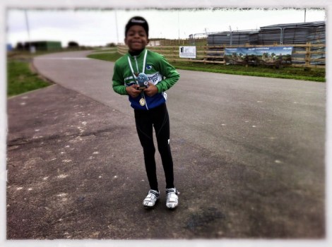 Kent Cyclopark held a halloween themed race, but there was nothing scary other than the early Sunday morning wind that chilled the circuit and the ten minute delay on the start line while the racers froze. The under 8’s and 10’s were grouped together, and the first few laps of the 12 lap race had Caelan and Harvey Tadman of Hillingdon Slipstreamers moving ahead of the pack as well as holding their own against two under 10’s who later pulled away. Caelan led most of the race with Harvey pacing him and taking the lead at times. It all came down to the bell with Caelan taking the last corner in front and Harvey slipstreaming him uphill to the line and pulling out to go alongside for a photo finish… Caelan was awarded the win but thought Harvey deserved the victory as he made mistakes, but he can only learn from them in the heat of battle… Great racing and banter with the Tadman family.